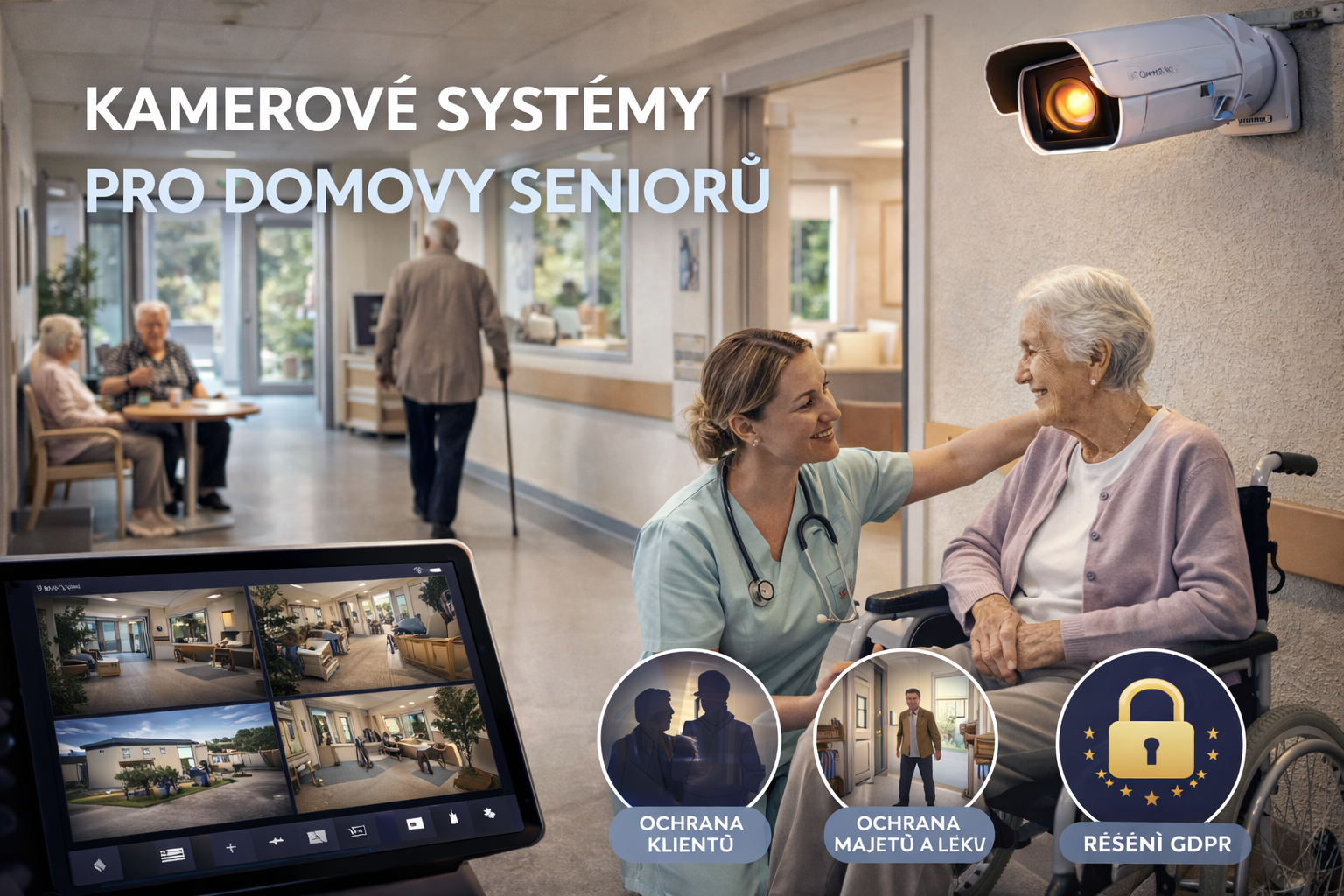 V domovech seniorů přispívá monitoring ke zvýšení bezpečí klientů i zaměstnanců.